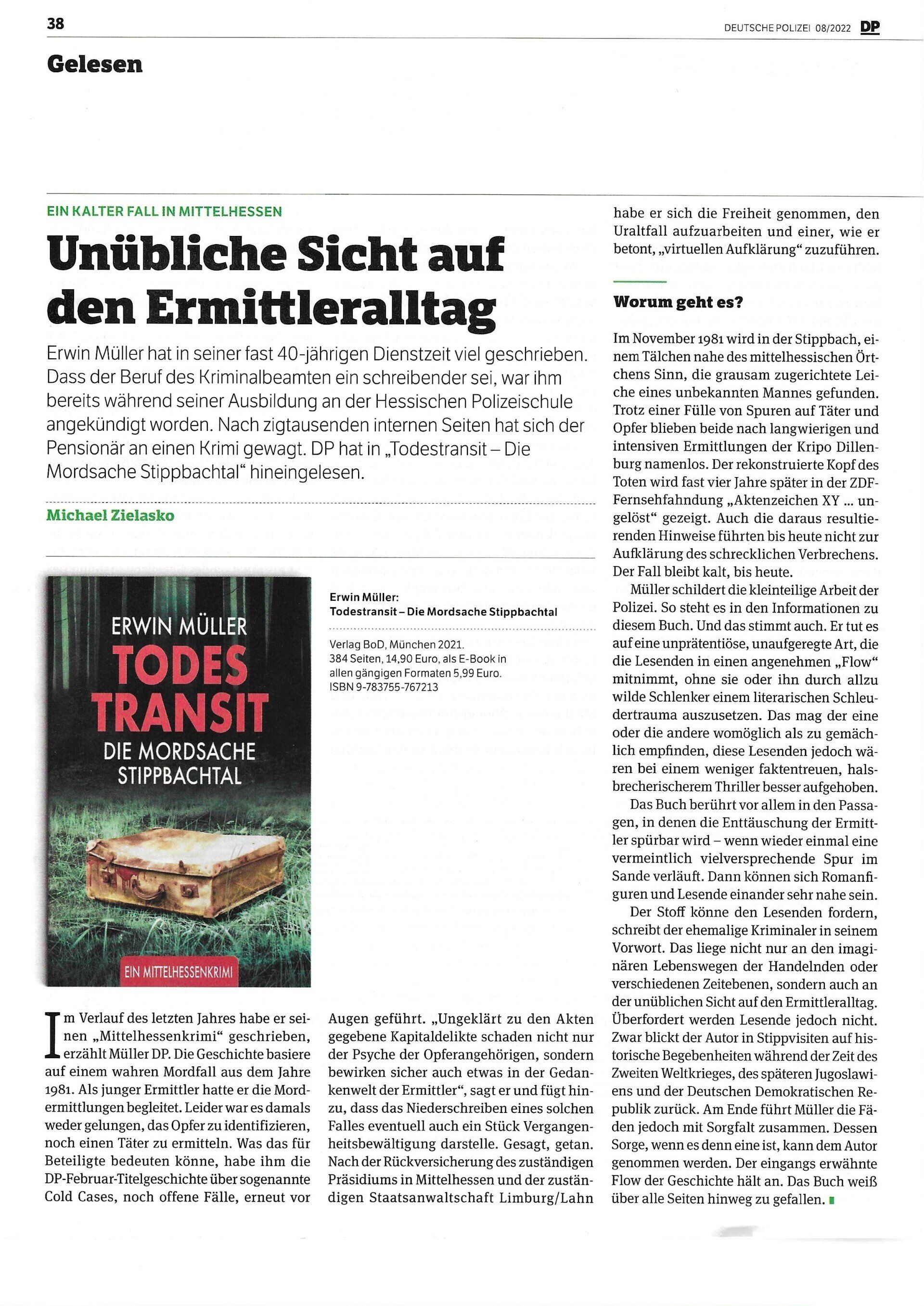 06: Veröffentlichung: "Unübliche Sicht auf den Ermittleralltag" (mit Interview), Deutsche Polizei 08/2022